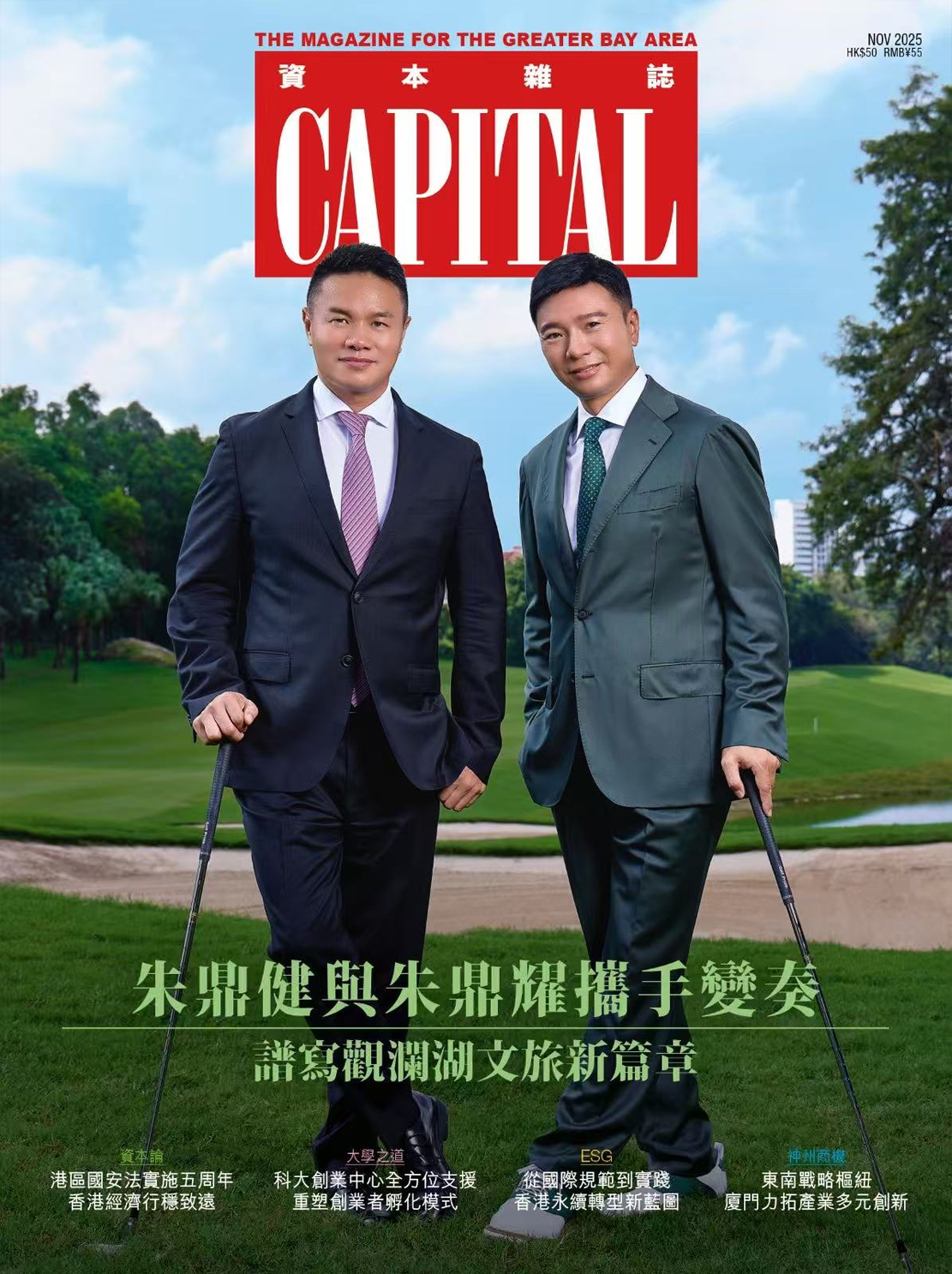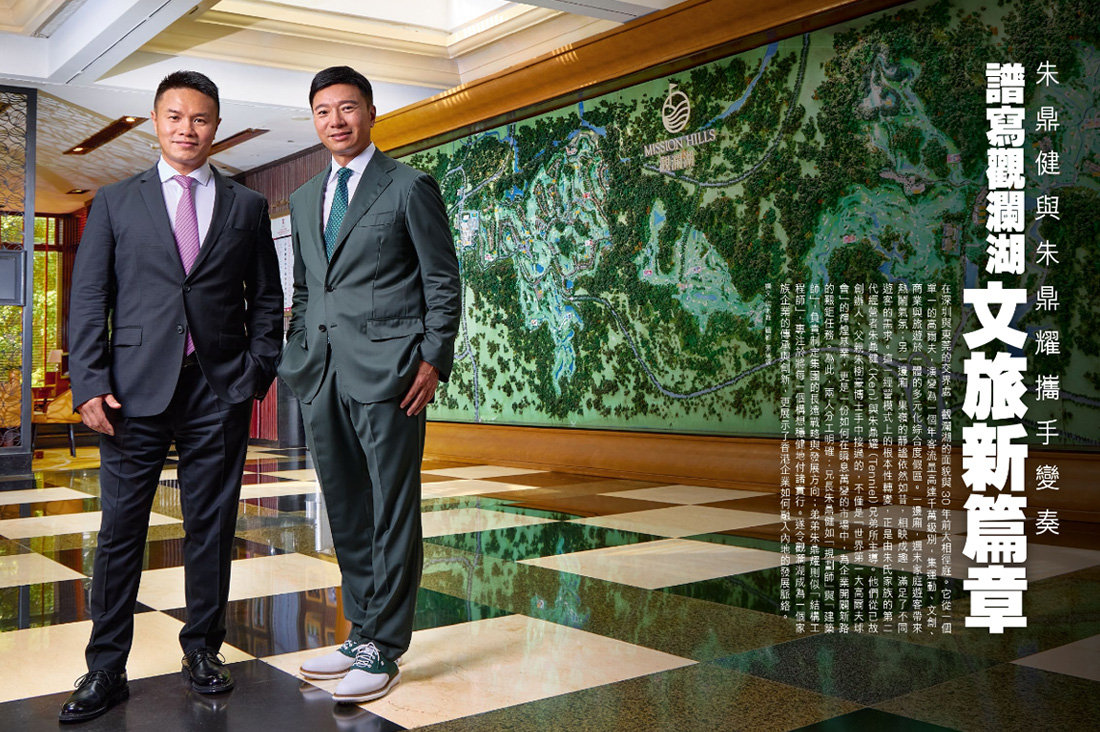 在深圳与东莞的交界处,观澜湖的面貌与30年前大相径庭。它从一个单一的高尔夫,演变为一个年客流量高达千万级别,集运动、文创、商业与旅游于一体的多元化综合度假区。一边厢,周末家庭游客带来热闹气氛;另一边厢,果岭的静谧依然如昔,相映成趣,满足了不同游客的需求。这一经营模式上的根本性转变,正是由朱氏家族的第二代经营者朱鼎健(Ken)与朱鼎耀(Tenniel)兄弟所主导。他们从已故创办人、父亲朱树豪博士手中接过的,不仅是「世界第一大高尔夫球会」的辉煌基业,更是一份如何在瞬息万变的市场中,为企业开辟新路的艰巨任务。为此,两人分工明确:兄长朱鼎健如「规划师」与「建筑师」,负责制定集团的长远战略与发展方向;弟弟朱鼎耀则似「结构工程师」,专注于将每一个构想稳健地付诸实行。遂令观澜湖成为一个家族企业的传承与创新,更展示了香港企业如何融入内地的发展脉络
