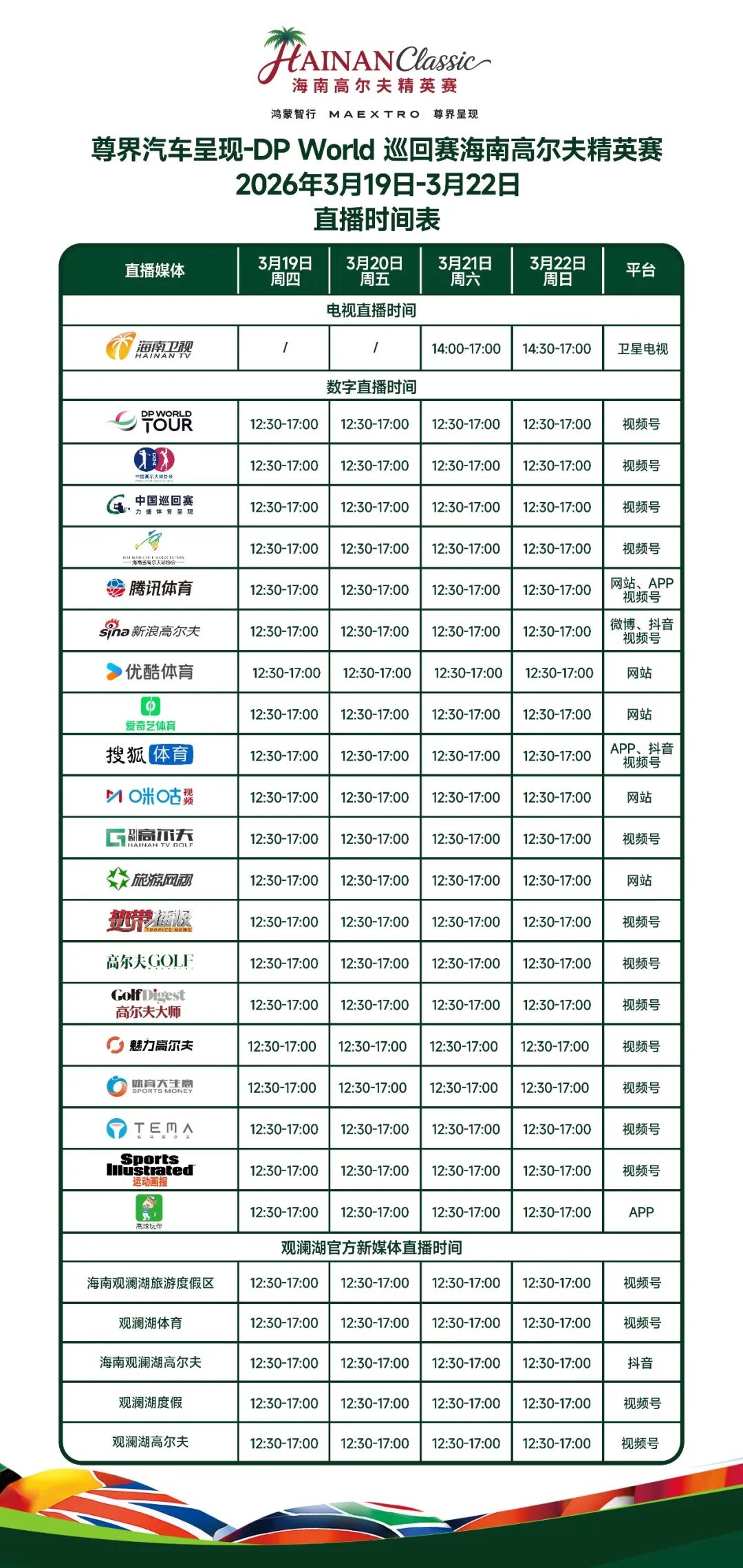 3月19日至22日,让我们共赴海口观澜湖的顶级高尔夫盛宴,期待歌手孙楠的高球时刻!
