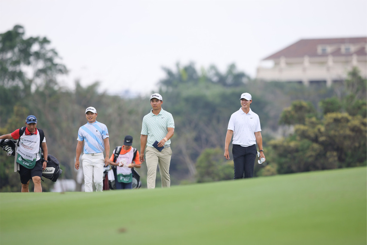 有11人晋级的中国军团也成了大家关注的焦点。凭借东道主天时、地利、人和,球手们力争展现最佳的竞技状态。丁文一今日火力全开,抓下六只小鸟,交出66杆追平首轮的佳绩,凭借三轮202杆(-14),暂居并列第四,保持在争冠第一集团。丁文一复盘时表示:“今天的状态比昨天更稳定一些,木杆的成熟度很高。3号洞抓下第一只小鸟是个转折点,让我放松了下来。明天决赛轮就抛开杂念安心打,黑石球场打好的话,我觉得自己还是很有机会的。”