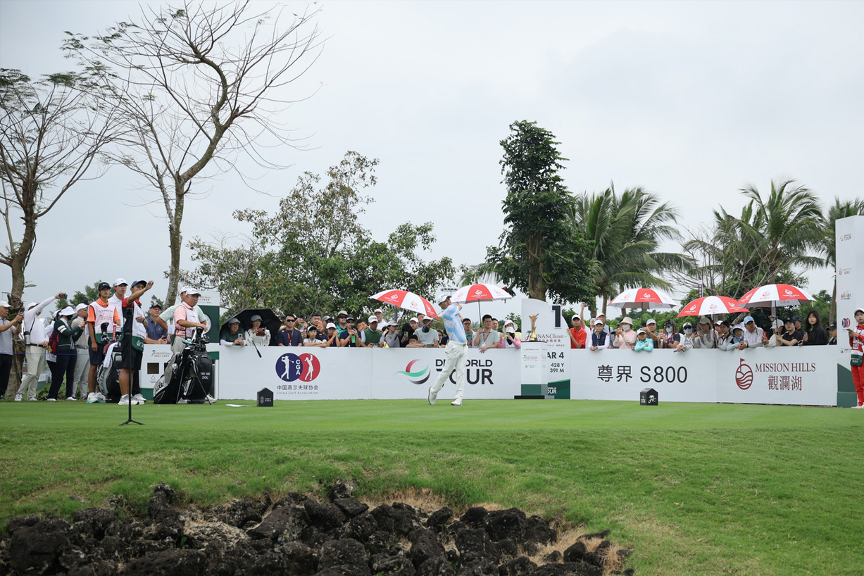 3月21日,尊界汽车呈现-DP World巡回赛海南高尔夫精英赛在海口观澜湖高尔夫球会结束第三轮争夺。相比于昨日风速较大的考验,今天天公作美,转为阴天,风力微弱、温度适中,为球手们创造了绝佳的出成绩条件。领先榜上竞争依旧呈现胶着态势,西班牙名将Jorge Campillo与美国球手Jordan Gumberg均以低于标准杆17杆,总杆199并列领跑。中国军团中排名靠前的丁文一、金博、周彦含、肖博文四位选手稳扎稳打,均保持在前列,其中丁文一前进到并列第四的位置,让明天的决赛轮有了想象的空间。
