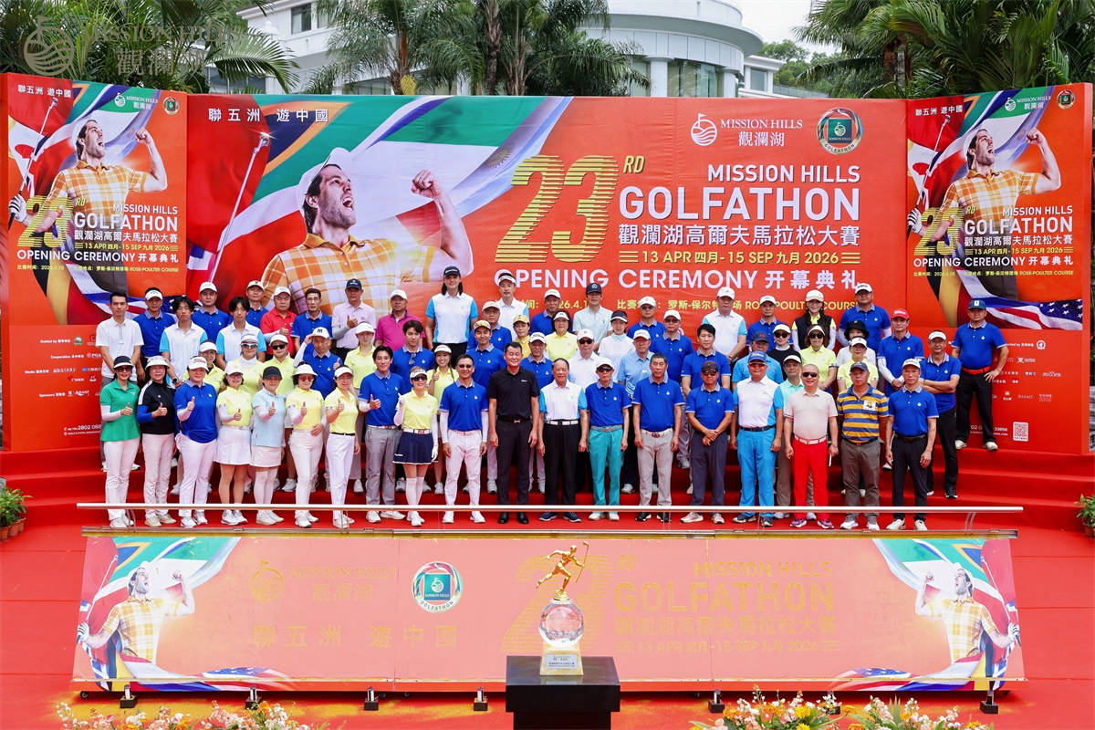 【2026年4月10日,东莞观澜湖】由观澜湖高尔夫球会主办的第二十三届观澜湖高尔夫马拉松大赛,于今日在东莞观澜湖高尔夫球会正式拉开帷幕。中国高尔夫球协会原顾问、广东省高尔夫球协会原主席许德立先生,以及香港艺人高尔夫协会多位艺人,包括张颖康、林钰洧、罗天宇、黄美棋等应邀出席开幕式。