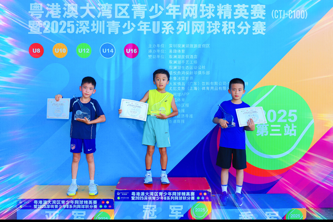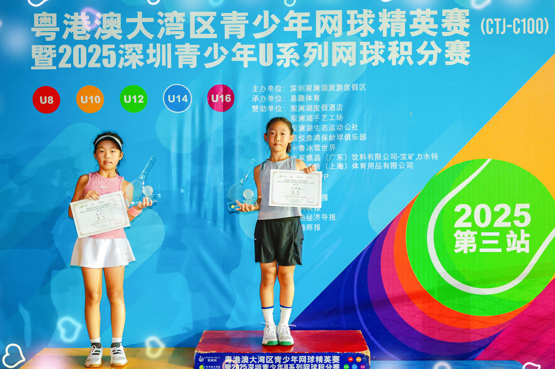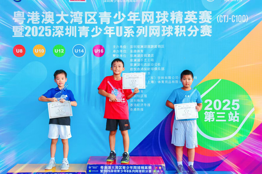 近日,粵港澳大灣區青少年網球精英賽暨2025深圳青少年U系列網球積分賽第三站(CTJ-C100)在深圳觀瀾湖生態運動公社網球中心順利舉行。本次比賽於10月18日至19日及25日至26日分兩個週末進行,吸引了來自粵港澳大灣區的眾多青少年網球選手參與,經過四天的激烈角逐,最終產生了七個組別的冠軍。