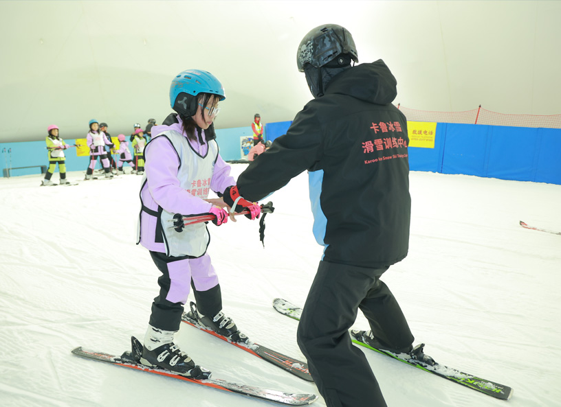 打造冬日限定樂趣的滑雪營,以5天4夜的沉浸式體驗,讓6-13歲孩子暢享冰雪樂趣。分單板與雙板的學習內容,學員可在54000㎡超大冰雪世界中暢滑,20萬m³模擬造雪帶來優質無障礙的“麵條雪”滑道。專業教練團隊設定分級課程,從基礎的站姿、滑行技巧到進階的轉彎、剎車訓練,逐步引導孩子掌握滑雪技能,同時增強平衡能力、協調性與柔韌性。課餘時間,孩子還能參加娛雪、手工藝、卡丁車等豐富項目,讓冰雪體驗更加立體多元。